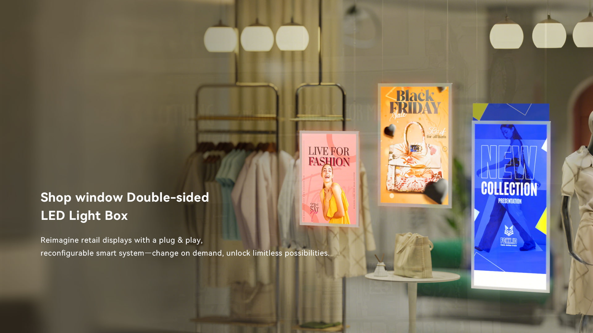 600×350mm/900×350mm/1200×450mm Sliding tochange graphics,Double-sided display